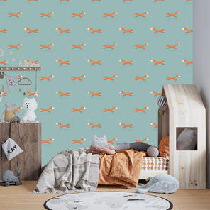 Light Teal Foxes Wallpaper