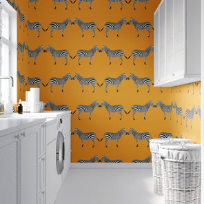 Zebras Bright Orange Wallpaper